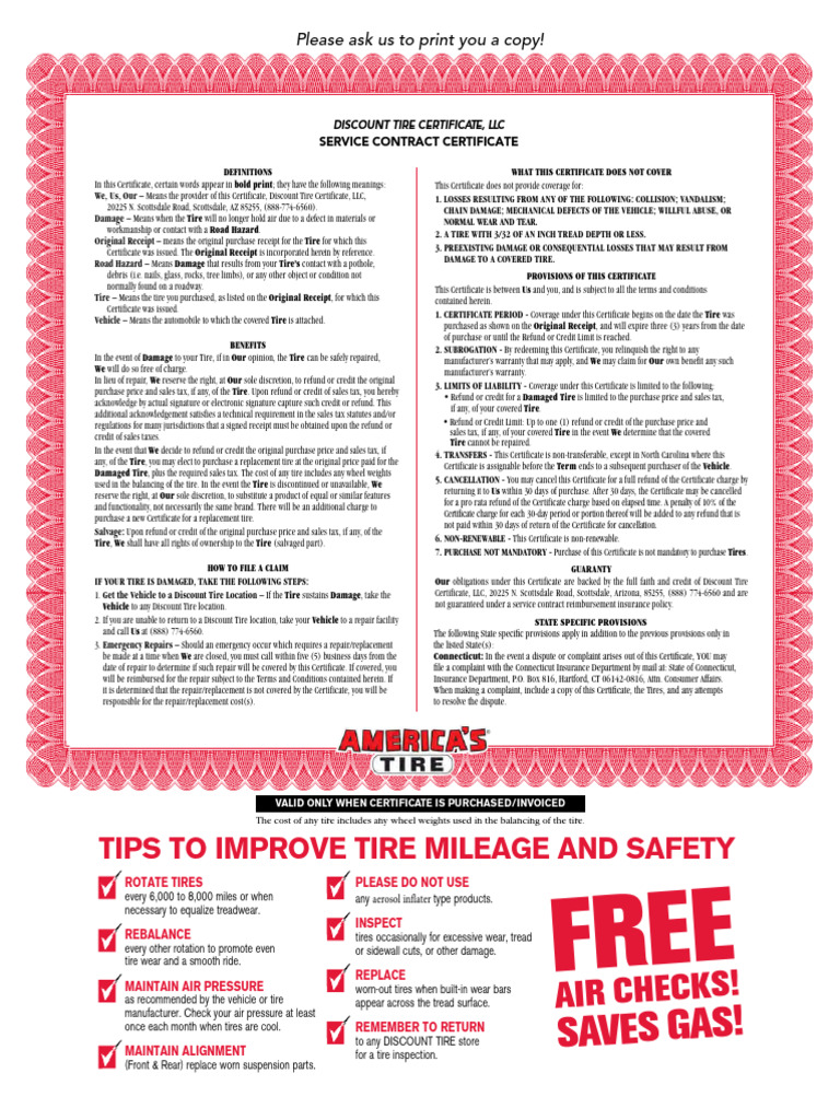 Americas Tire Certificate prntbl concejomunicipaldechinu gov co