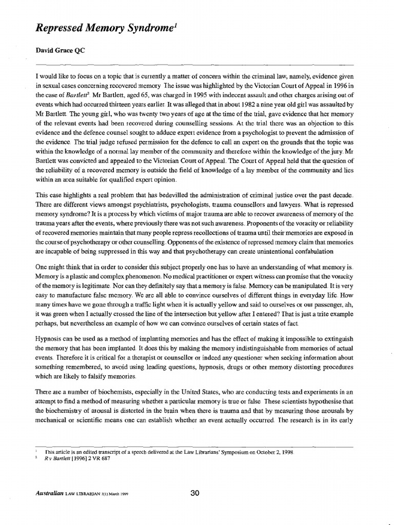 David QC Repressed Memory in Australian Court PDF Eye Movement