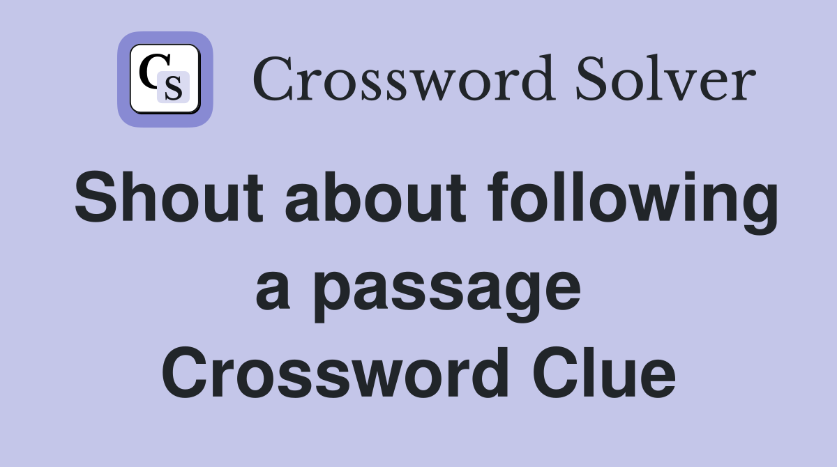 Shout about following a passage Crossword Clue Answers Crossword Solver