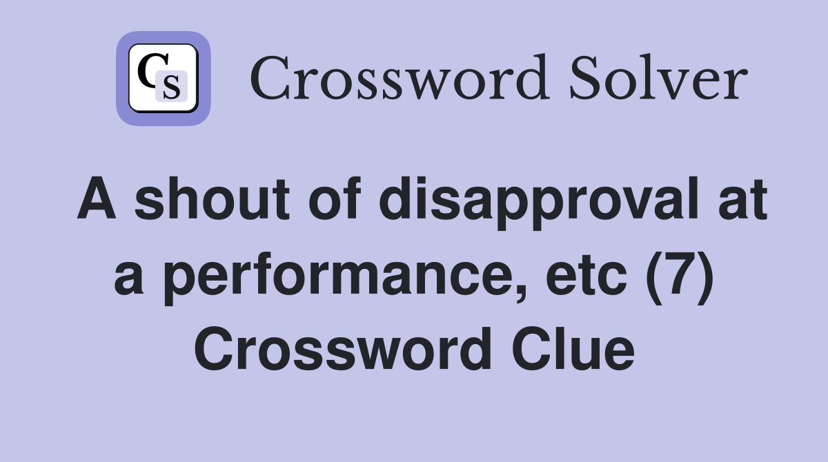 A shout of disapproval at a performance etc (7) Crossword Clue
