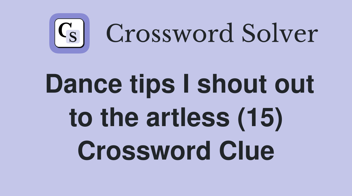 Dance tips I shout out to the artless (15) Crossword Clue Answers