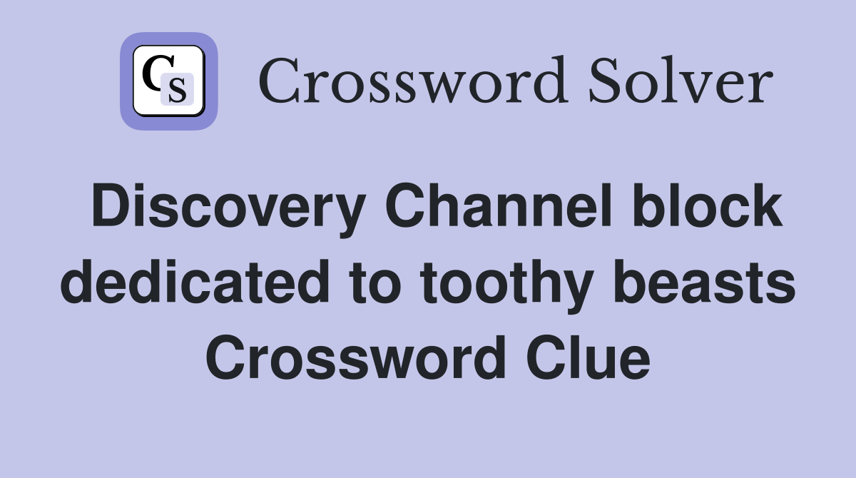 Discovery Channel block dedicated to toothy beasts Crossword Clue