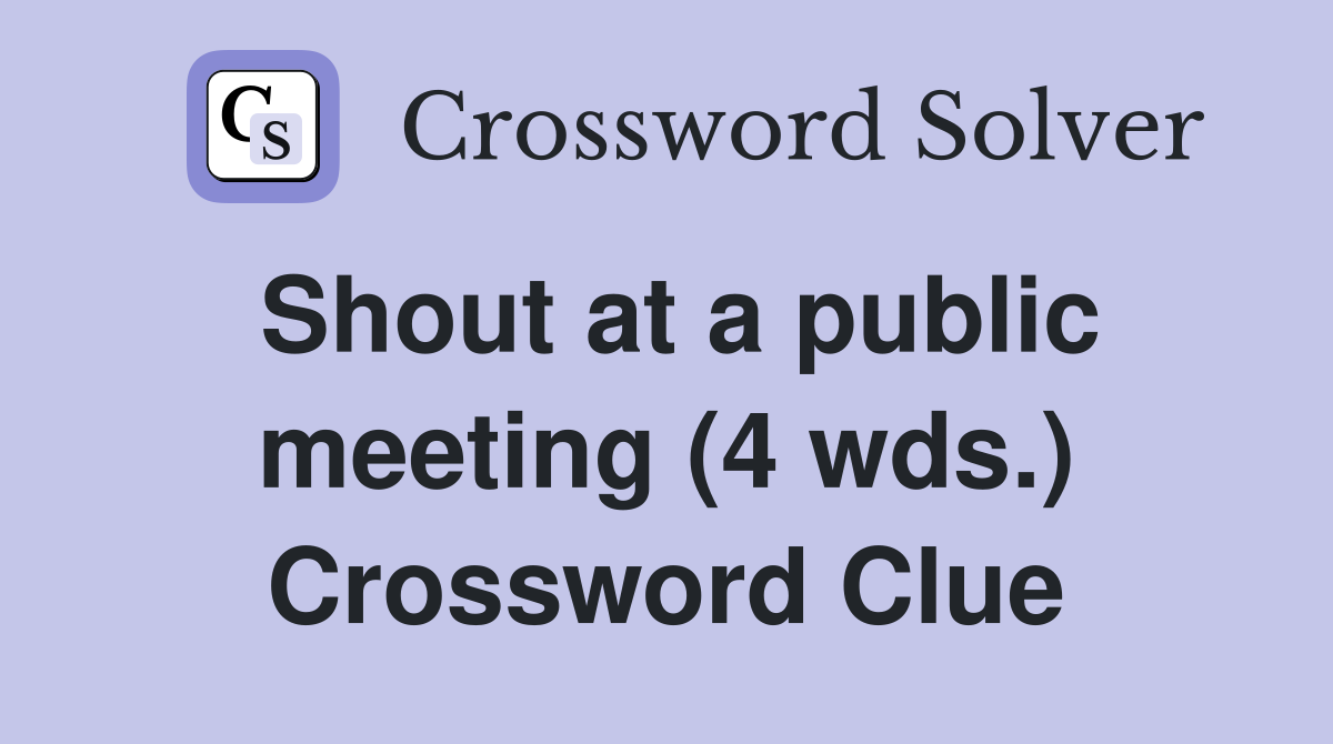 Shout at a public meeting (4 wds ) Crossword Clue Answers Crossword
