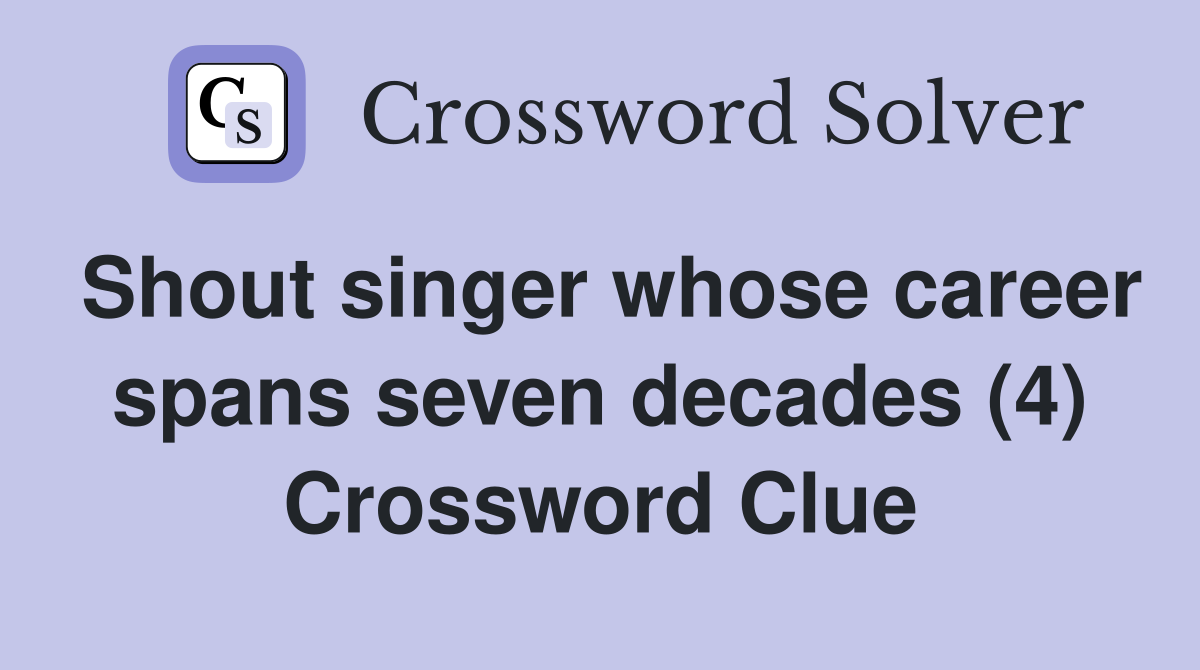 Shout singer whose career spans seven decades (4) Crossword Clue