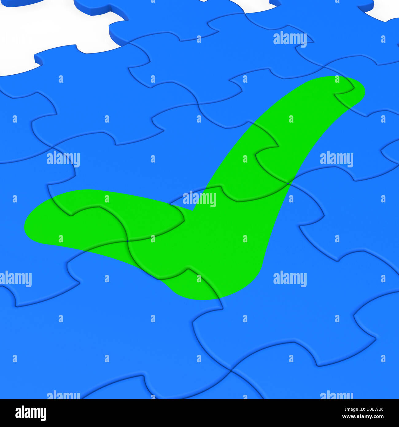 Check Mark Puzzle Showing Approval Checklist Or Confirmation Stock