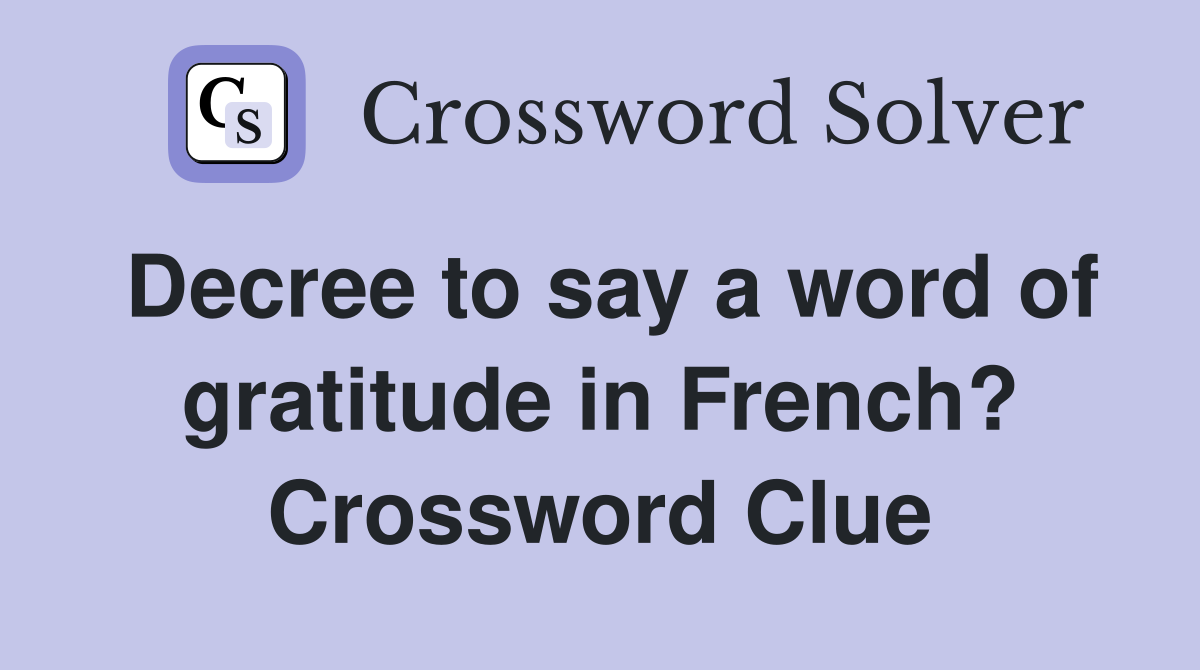 Decree to say a word of gratitude in French? Crossword Clue Answers