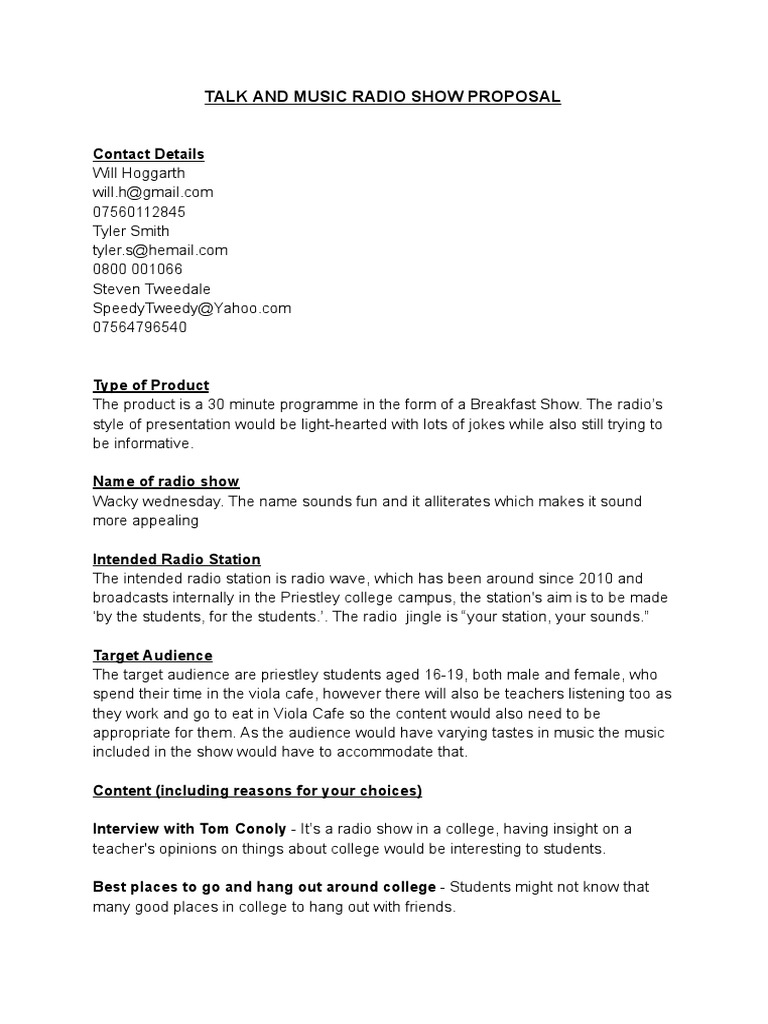 Radio Show Proposal Template