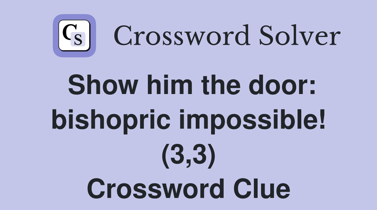 Show him the door: bishopric impossible (3 3) Crossword Clue Answers