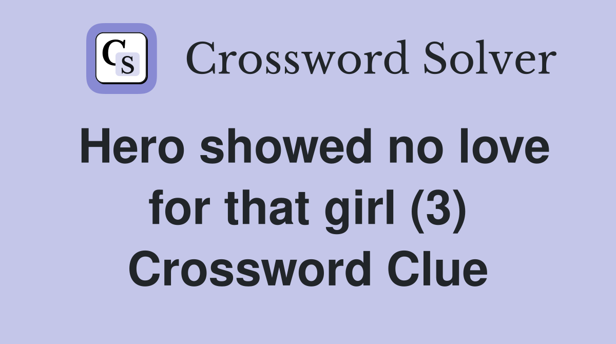 Hero showed no love for that girl (3) Crossword Clue Answers