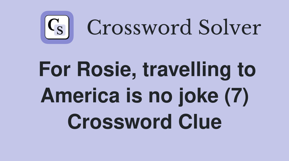 For Rosie travelling to America is no joke (7) Crossword Clue