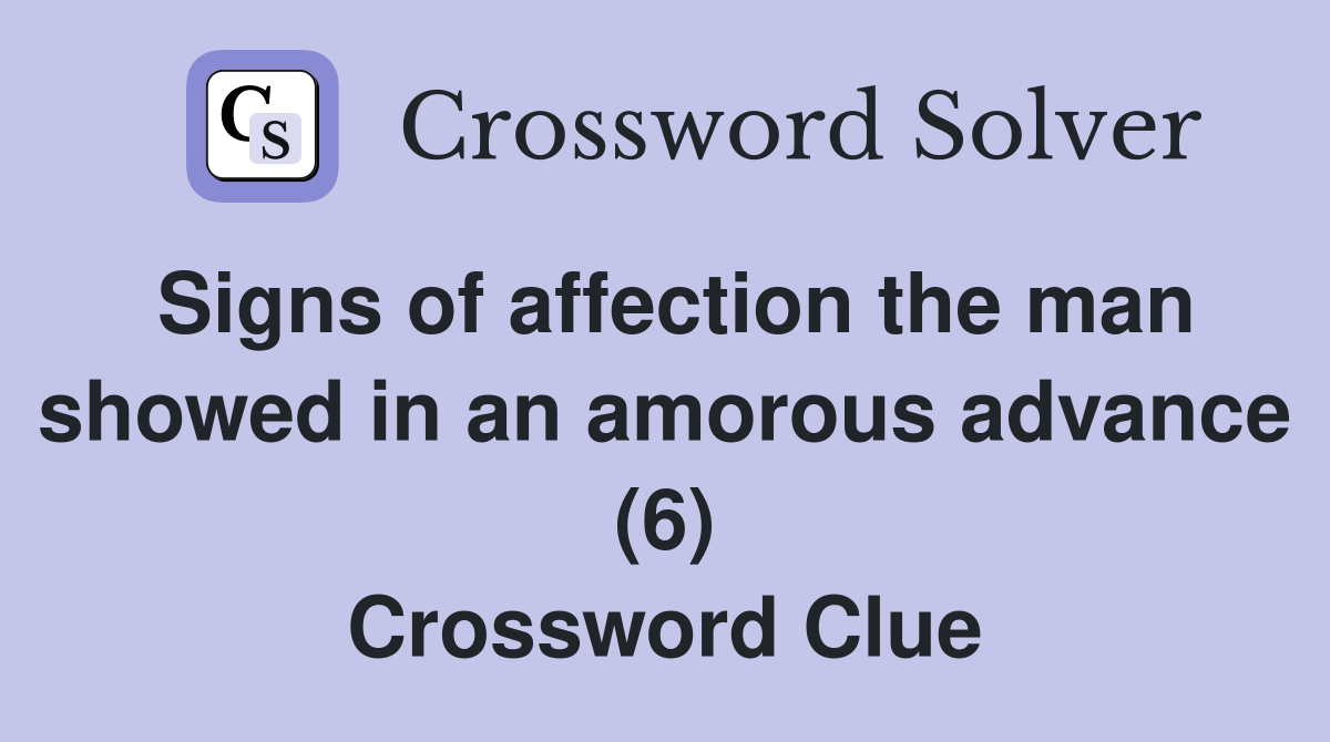 Signs of affection the man showed in an amorous advance (6) Crossword