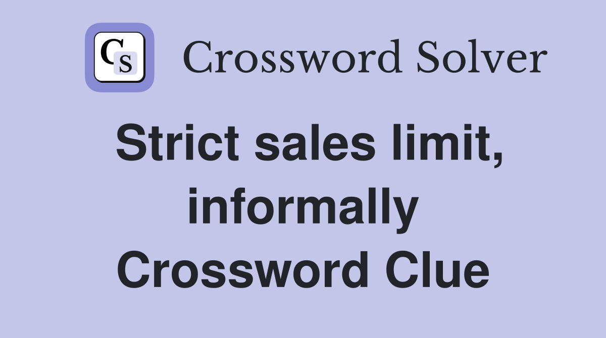 Strict sales limit informally Crossword Clue Answers Crossword Solver