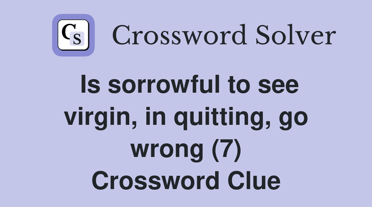 Is sorrowful to see virgin in quitting go wrong (7) Crossword Clue