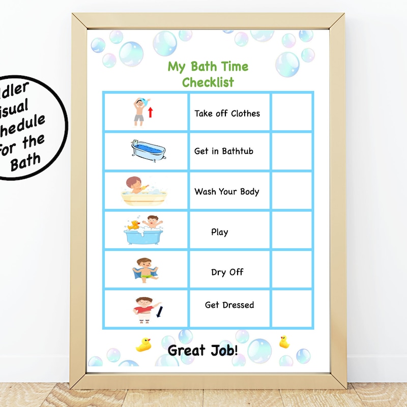 Shower Routine Chart for Kids Shower Checklist Step by Step Etsy