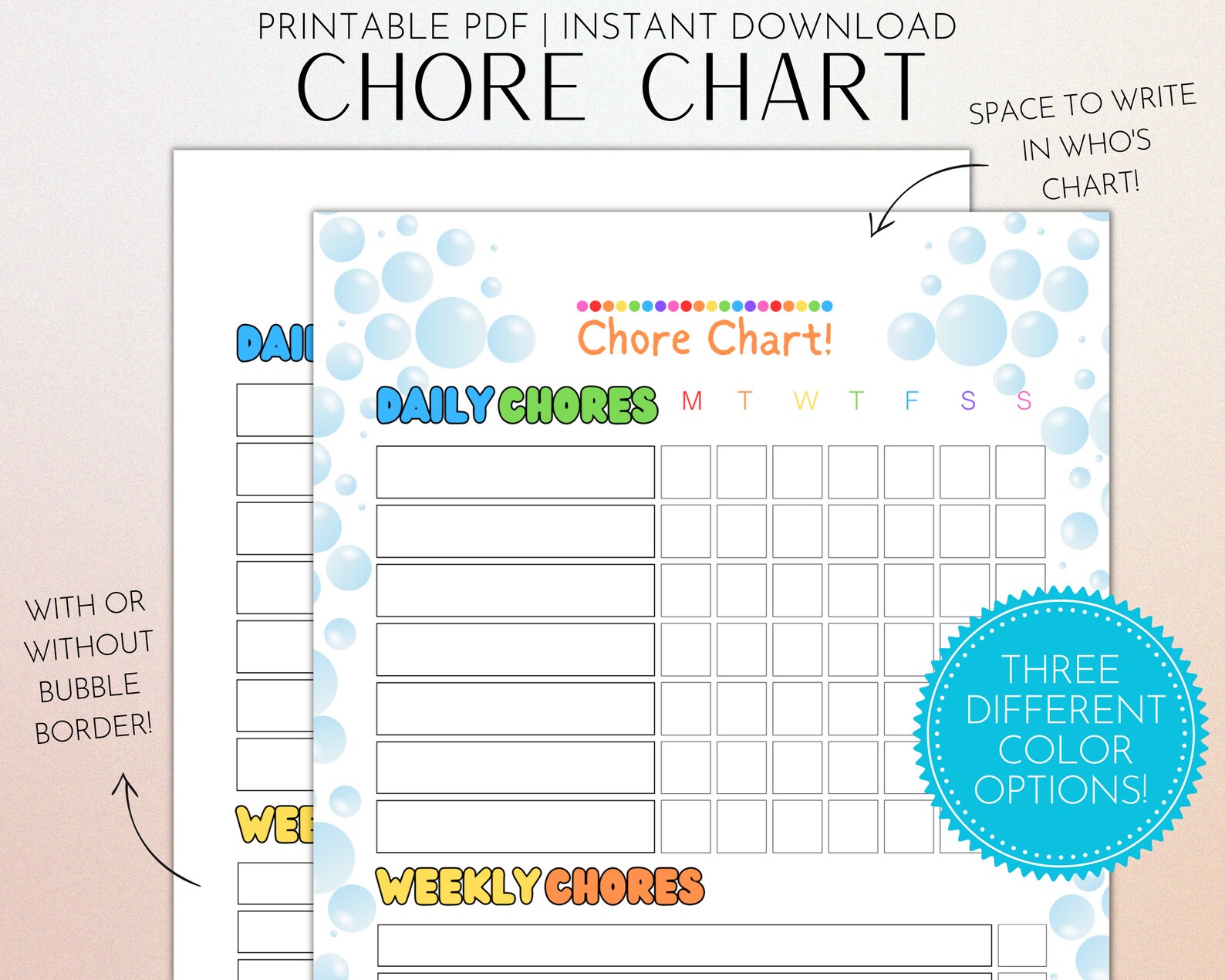 Printable Chore Chart Daily Chore Chart Weekly Chore Chart Chore Chart
