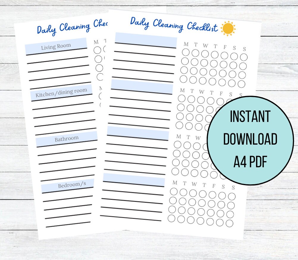 Printable Cleaning Checklist Keeping Organized Chores Template Etsy