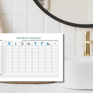 Restroom Checklist With Colorful Icons Cleaning Log Digital Printable