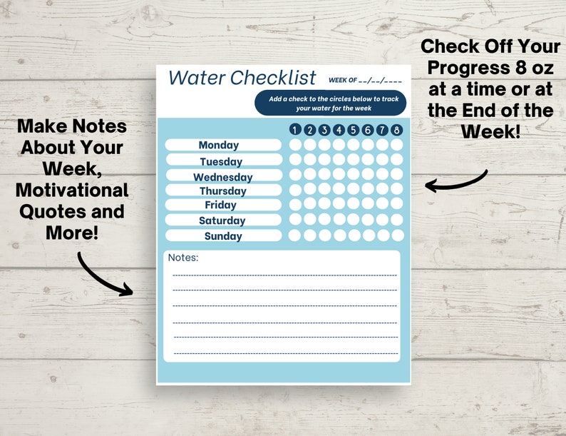 Track My Water Intake Weekly Checklist Daily to Do List Etsy
