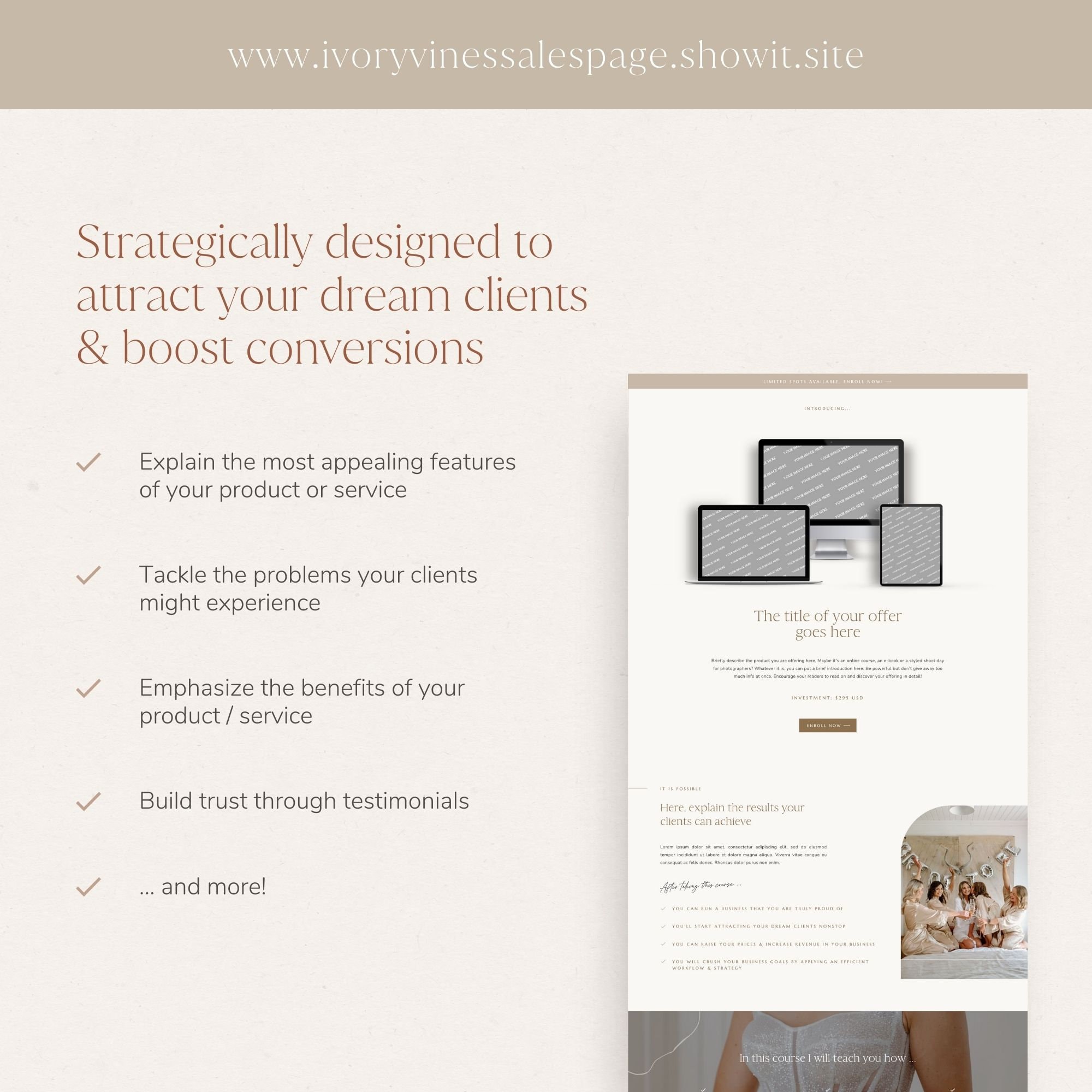 Dominique Showit Sales Page Design Template Sales Page Add On