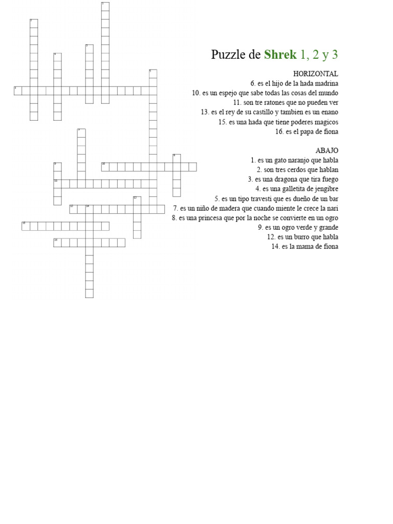 Print Crossword Puzzle: Shrek (language 3º Educación secundaria
