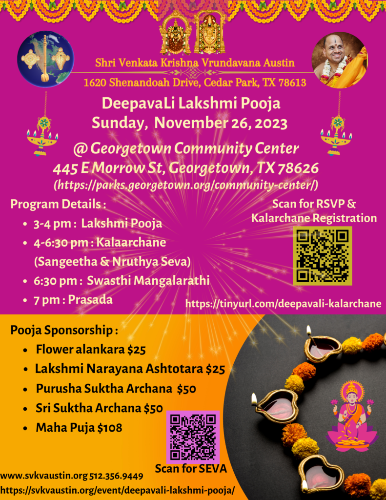Deepavali Lakshmi Pooja Shri Venkata Krishna Vrundavana Austin
