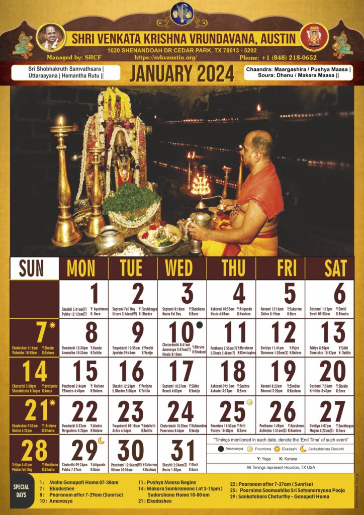 2024 Calendar Release Shri Venkata Krishna Vrundavana Austin