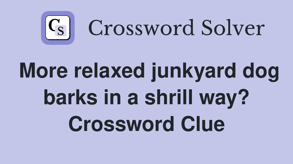More relaxed junkyard dog barks in a shrill way? Crossword Clue