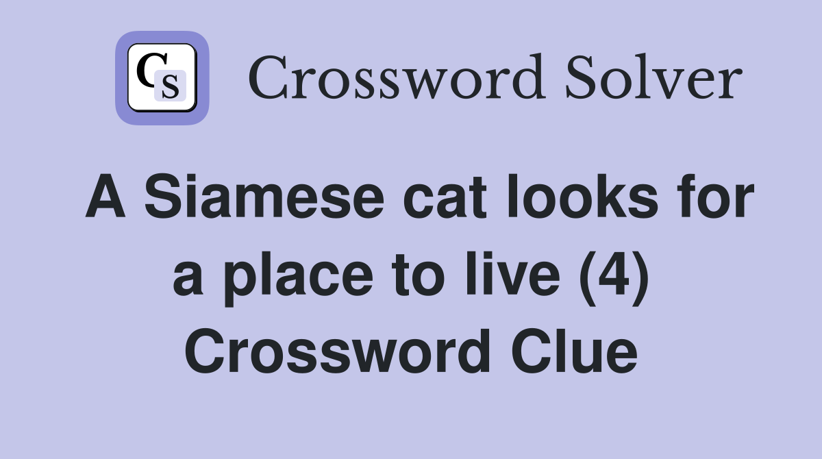 A Siamese cat looks for a place to live (4) Crossword Clue Answers