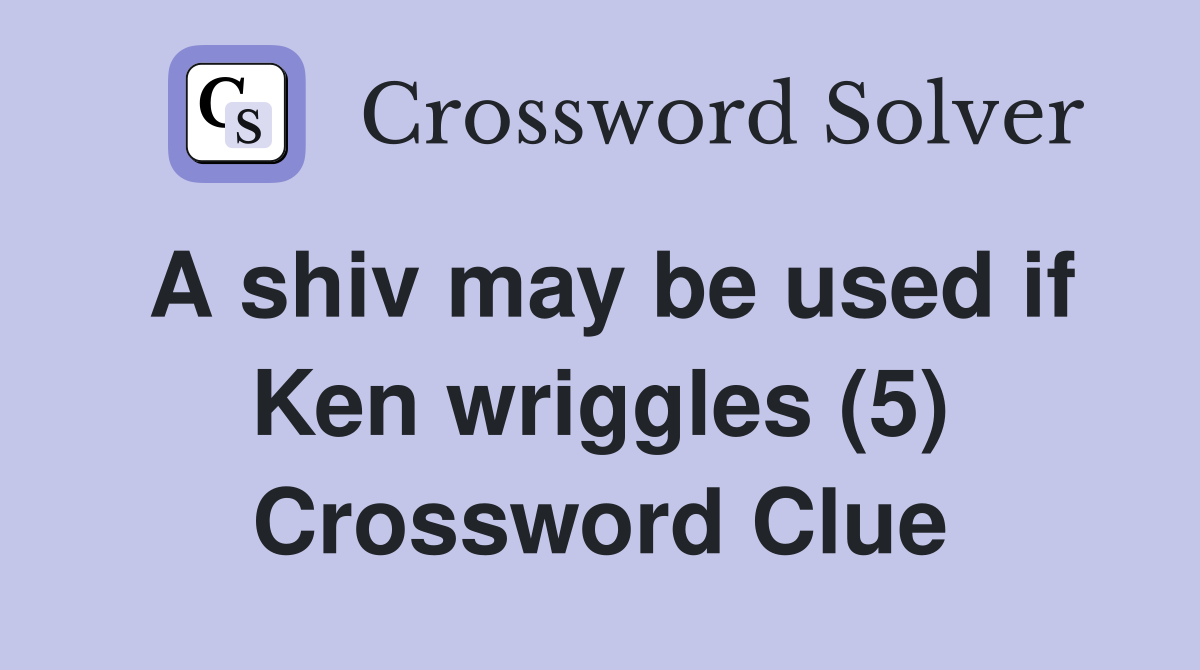 A shiv may be used if Ken wriggles (5) Crossword Clue Answers