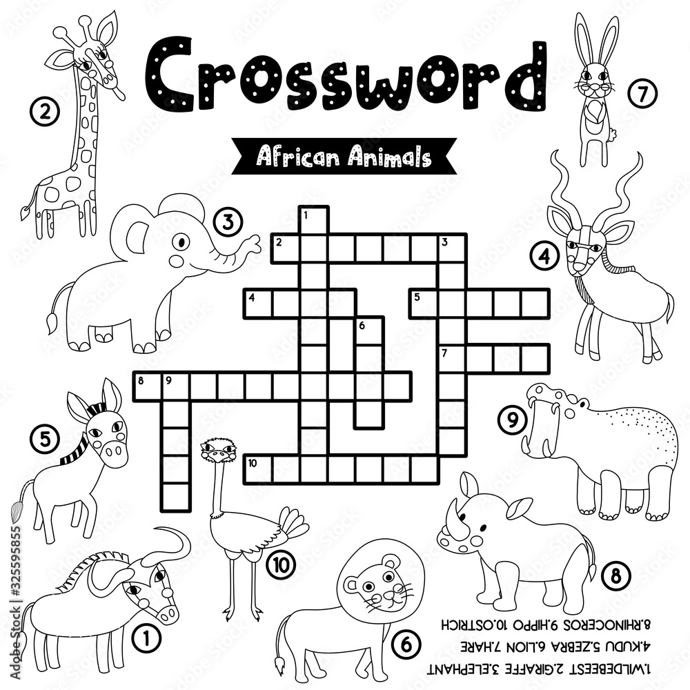 Crossword puzzle african animals coloring version Stock Vector Adobe