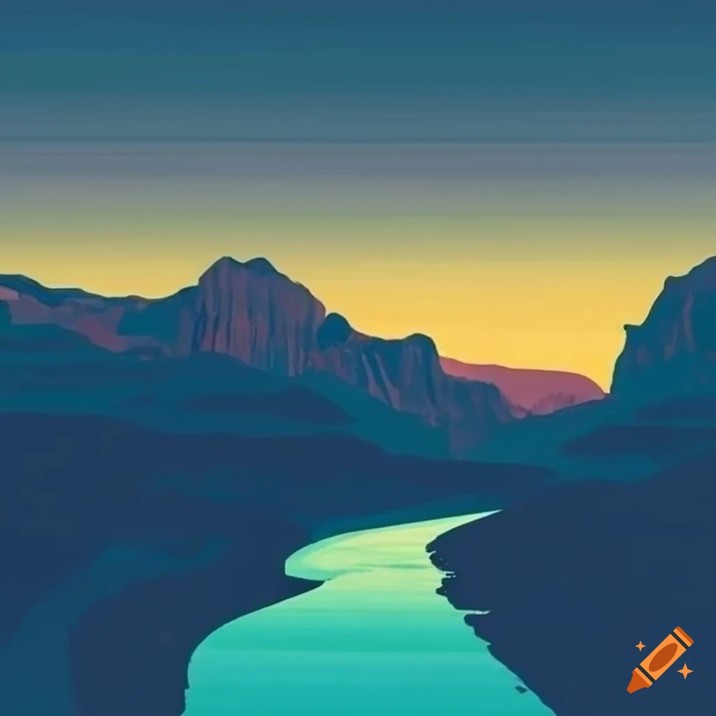 Bold silhouette art of a train crossing a river in Sierra Canyon on Craiyon