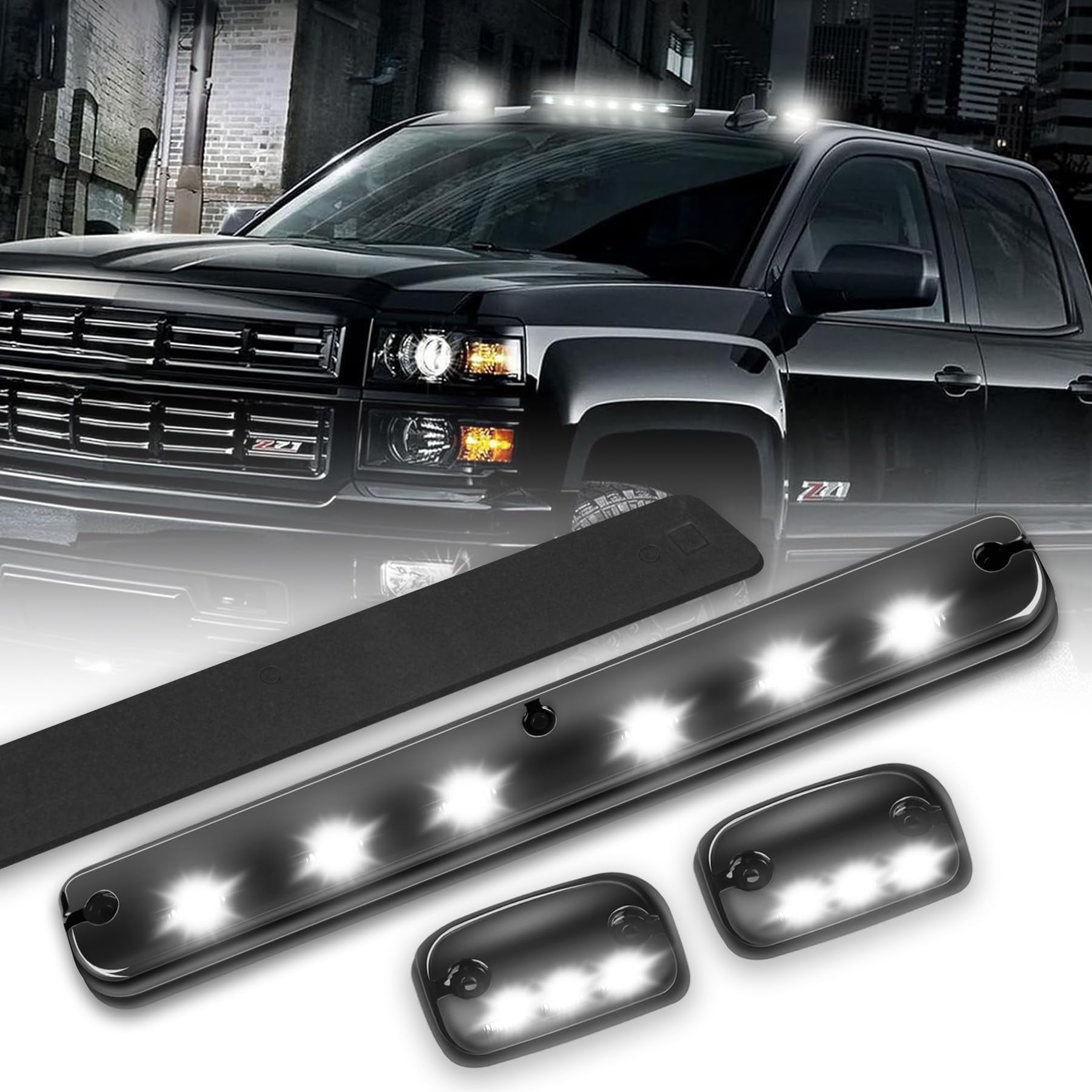 AMEXMART 3X LED Cab Maker Lights Smoke Lens White Cab Roof Top