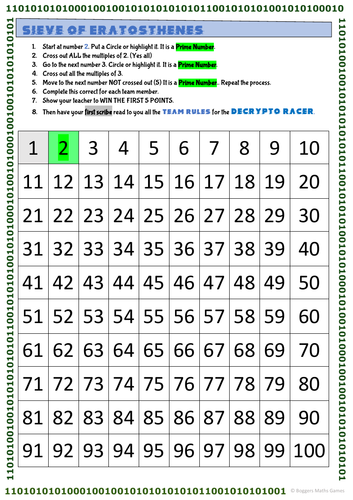 Sieve of Eratosthenes a classic Prime Numbers Worksheet TPT