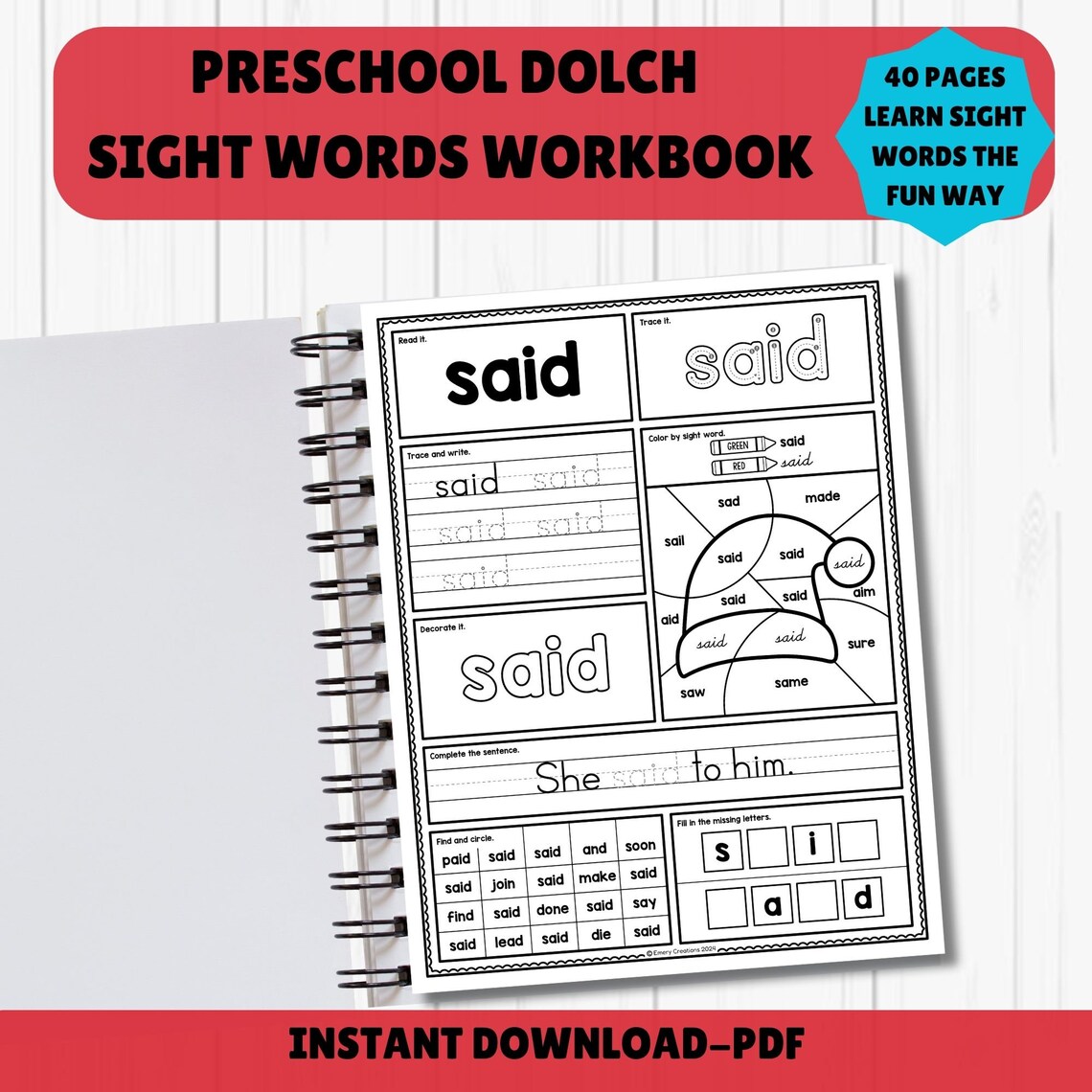 Sight Words Worksheets Printable Instant Download Preschool