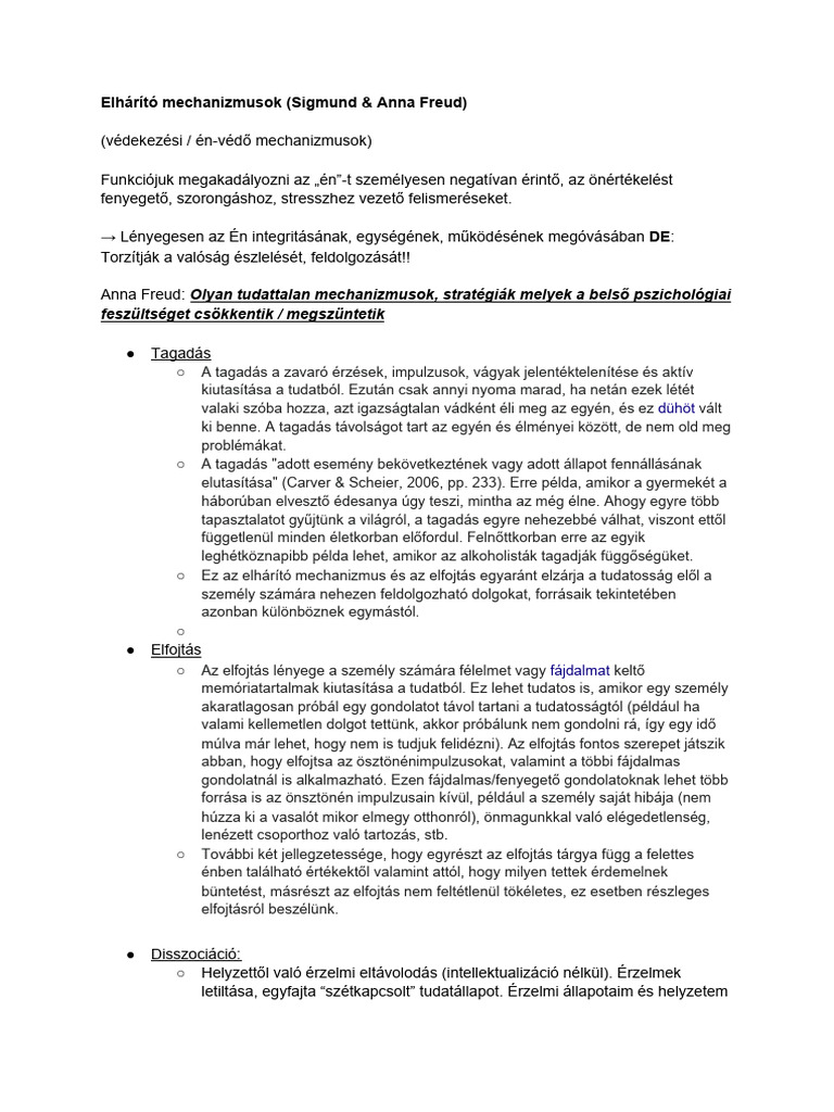 Elhárító mechanizmusok Sigmund Anna Freud PDF