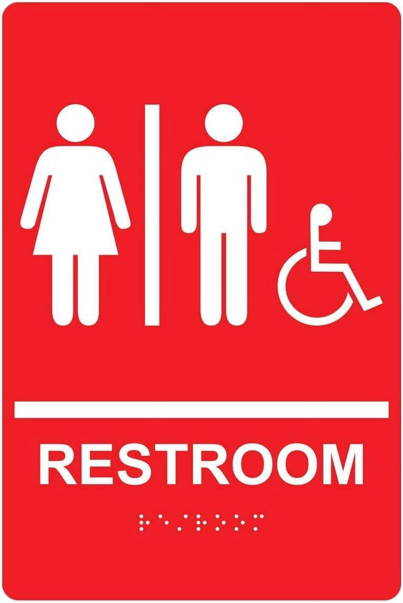 Accessible Restroom Sign ADA Compliant Braille and Raised Letters 9x6
