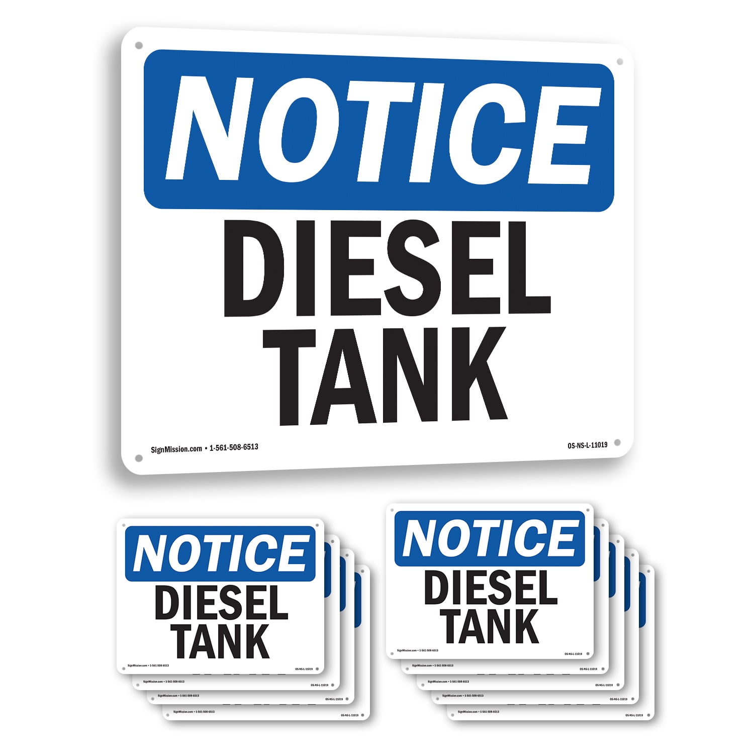 Diesel Tank OSHA Notice Rigid Plastic Sign 10 Inch x 7 Inch 10 Pack