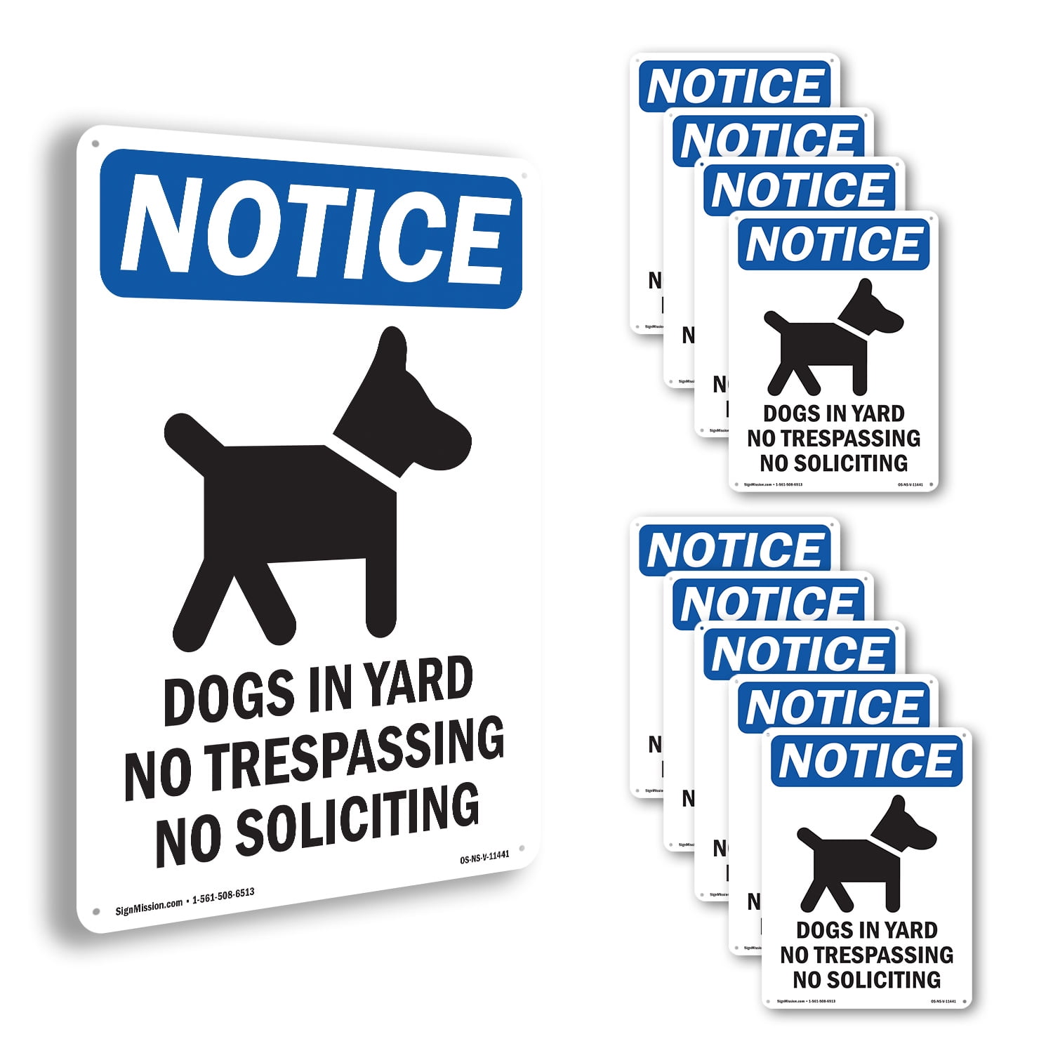 Dogs In Yard No Trespassing OSHA Notice Rigid Plastic Sign 14 Inch x 10