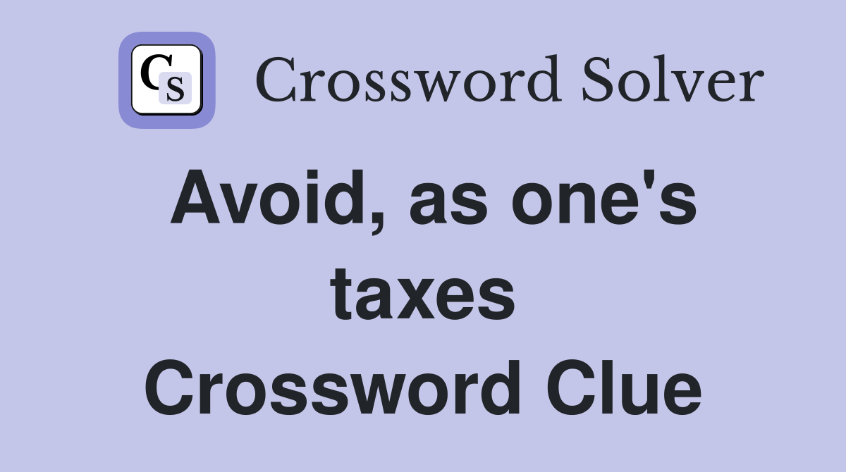 Avoid as one #39 s taxes Crossword Clue Answers Crossword Solver