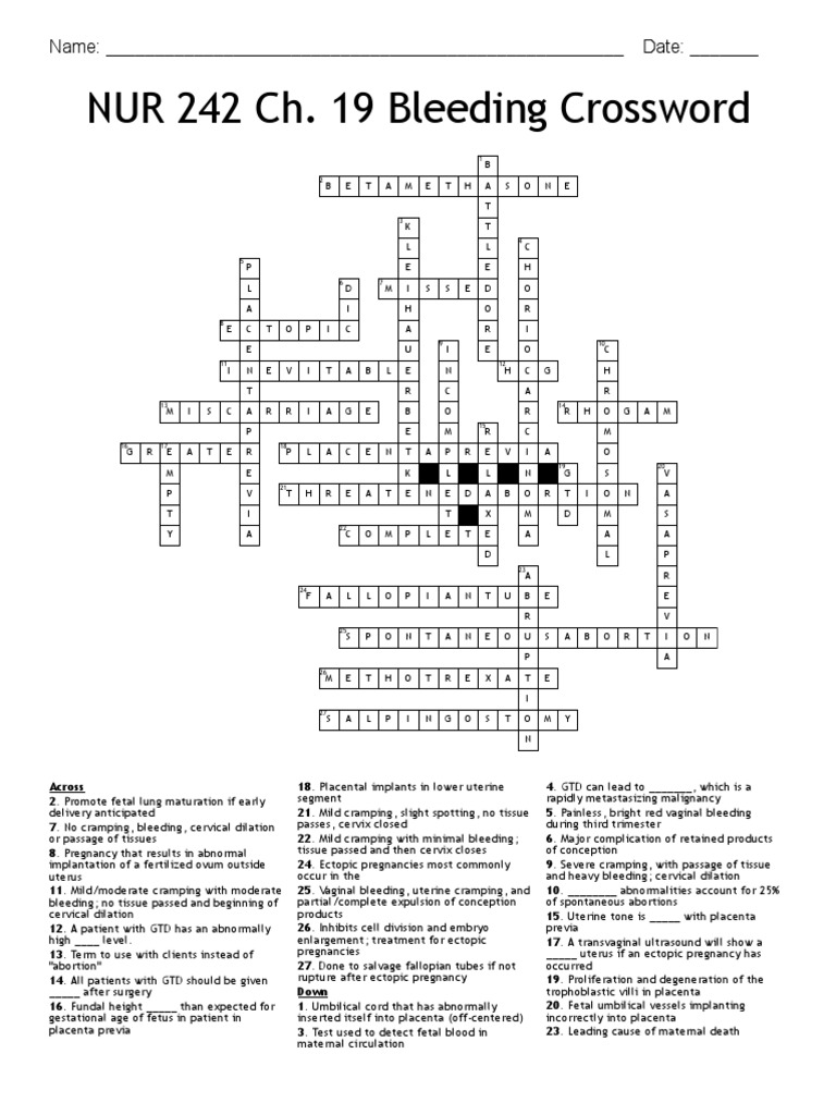 NUR 242 CH 19 Bleeding Crossword Answer Key 1 PDF Placenta Uterus