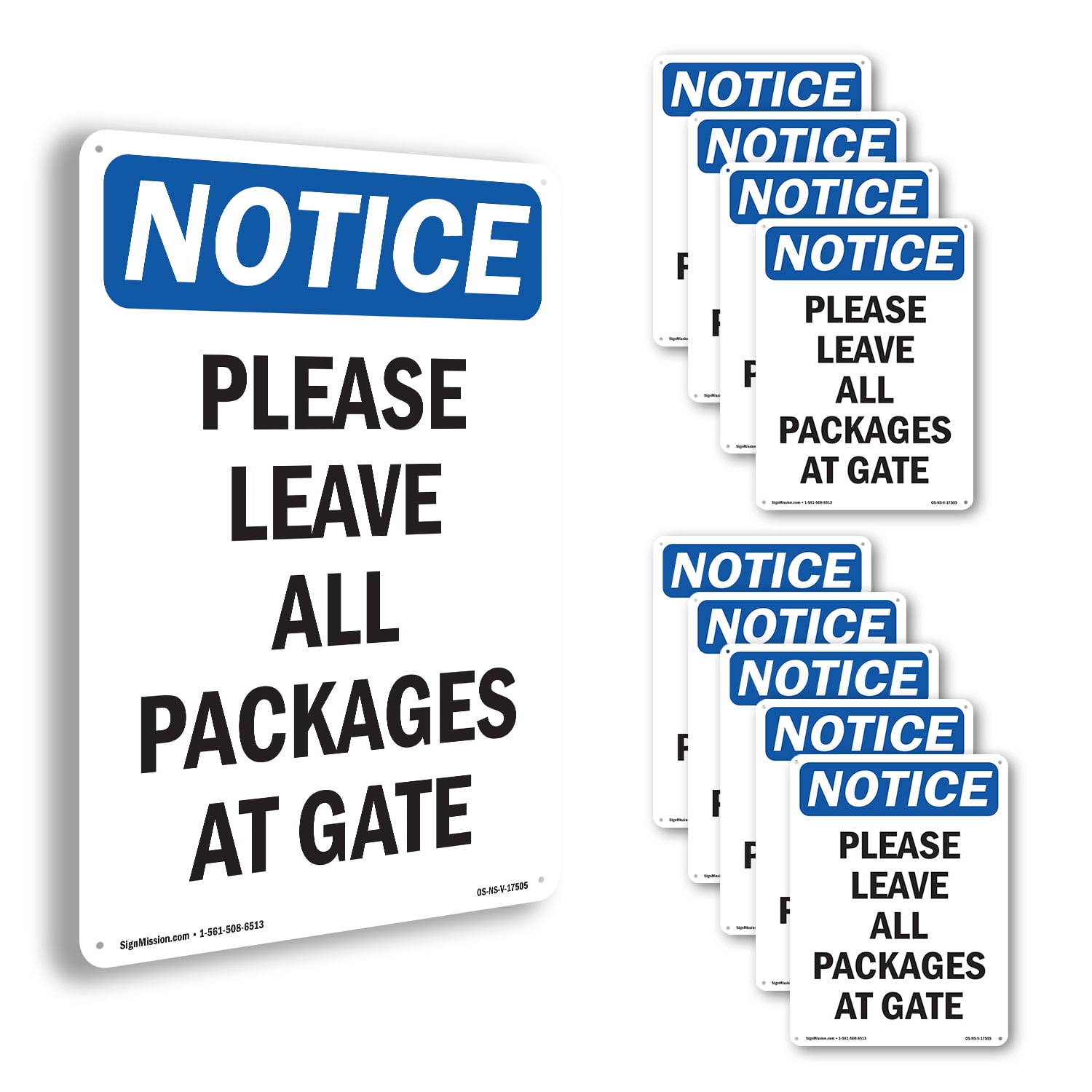 Please Leave All Packages At Gate OSHA Notice Aluminum Sign 18 Inch x
