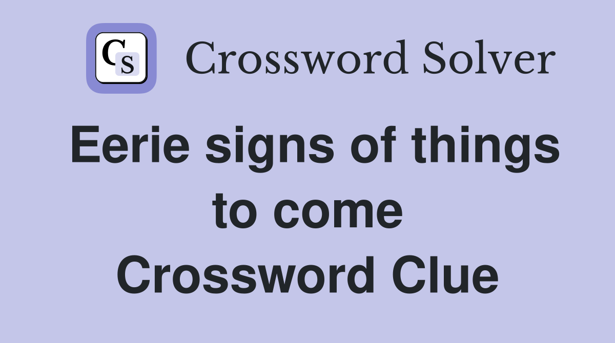Eerie signs of things to come Crossword Clue Answers Crossword Solver