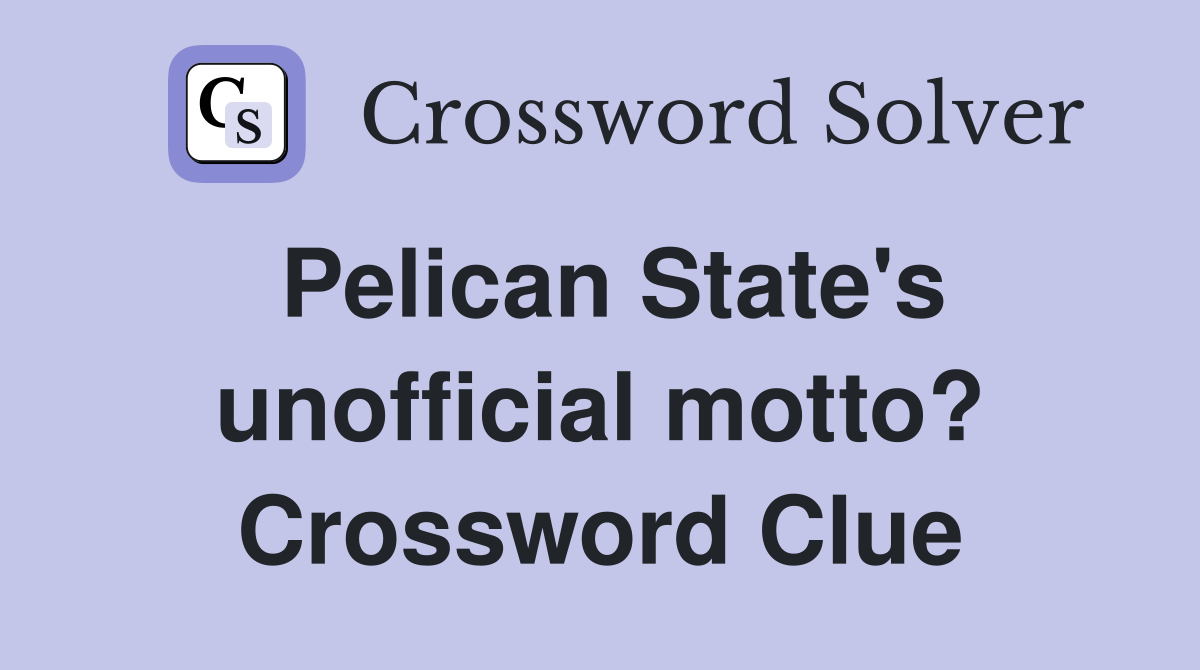 Pelican State #39 s unofficial motto? Crossword Clue Answers Crossword