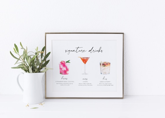 Signature Drink Sign Bar Menu Template Minimalist Printable Etsy