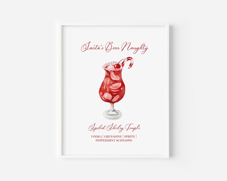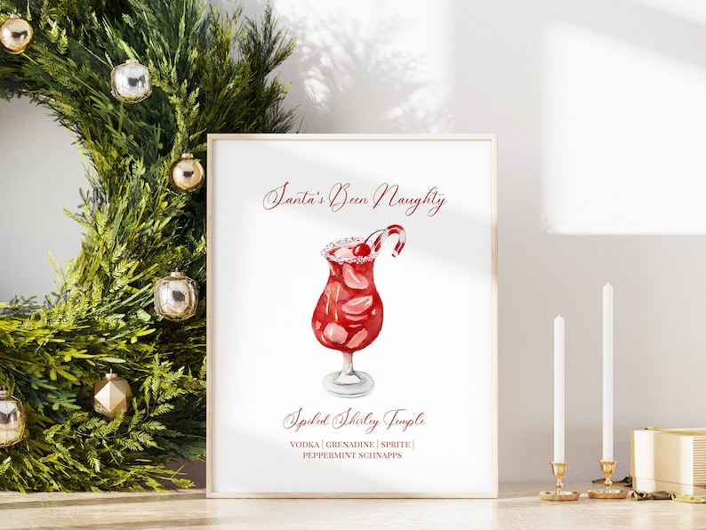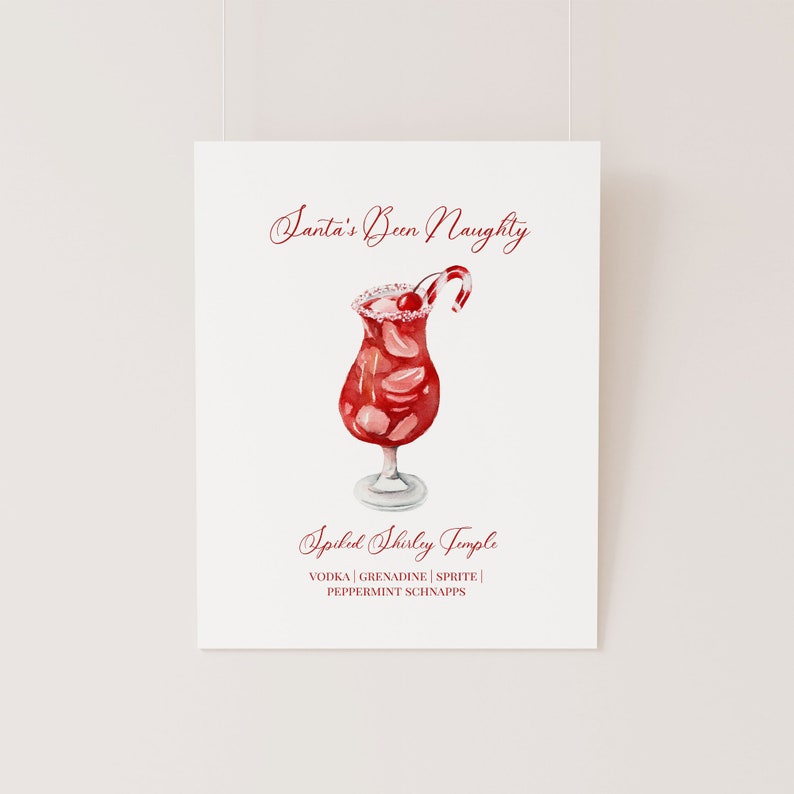 Holiday Signature Drink Menu TEMPLATE Dirty Shirley Temple Watercolor