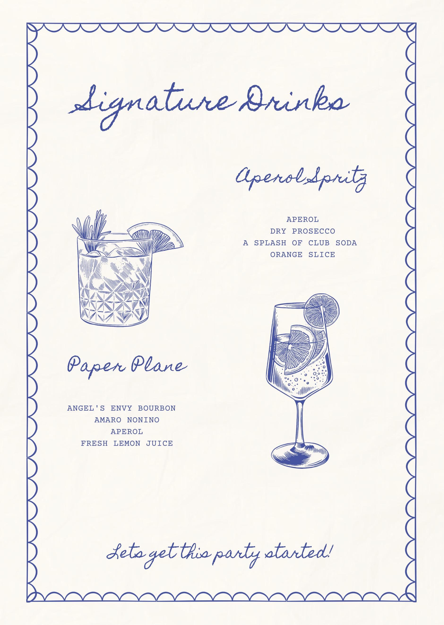 Party Supplies Calligraphy Wedding Drink Menu Template Signature