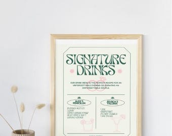 Signature Drink Menu Template Wedding Event Bar Sign Editable