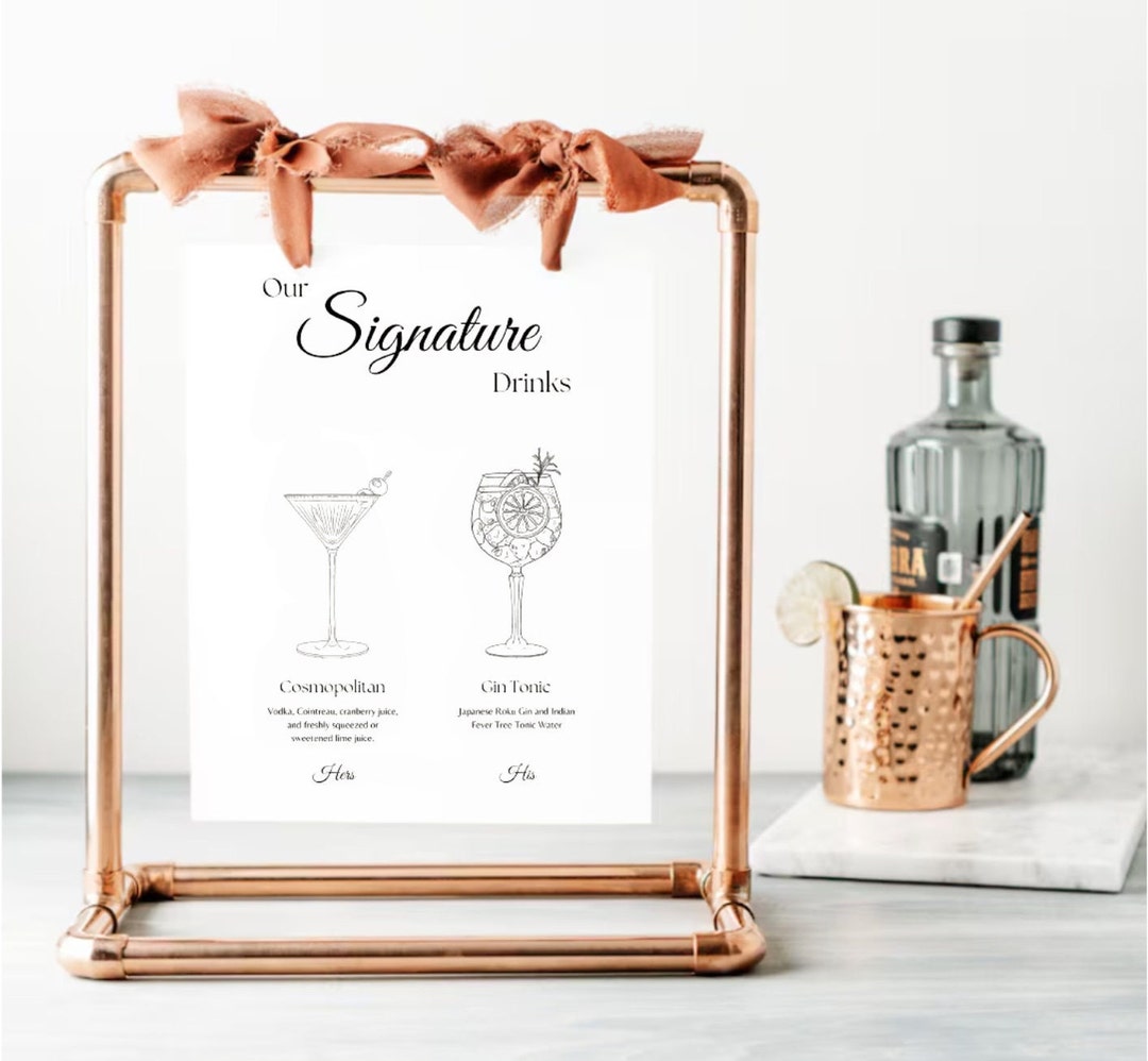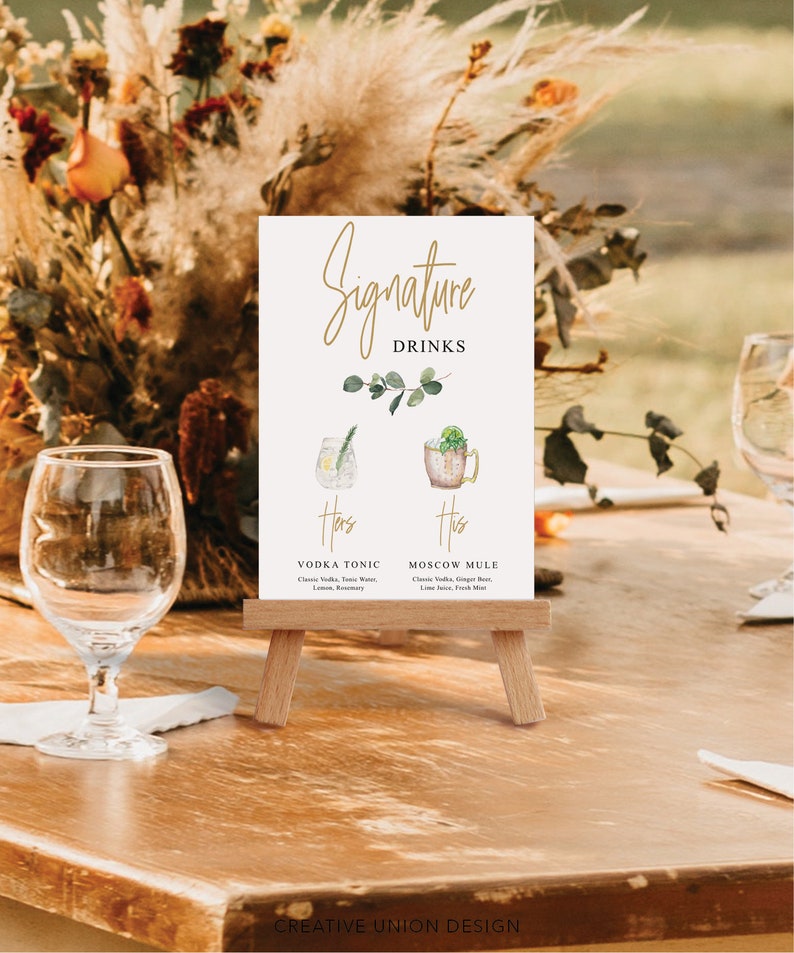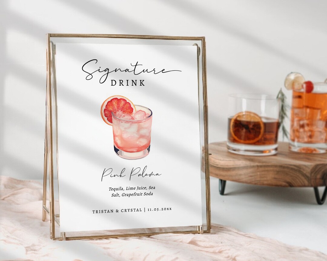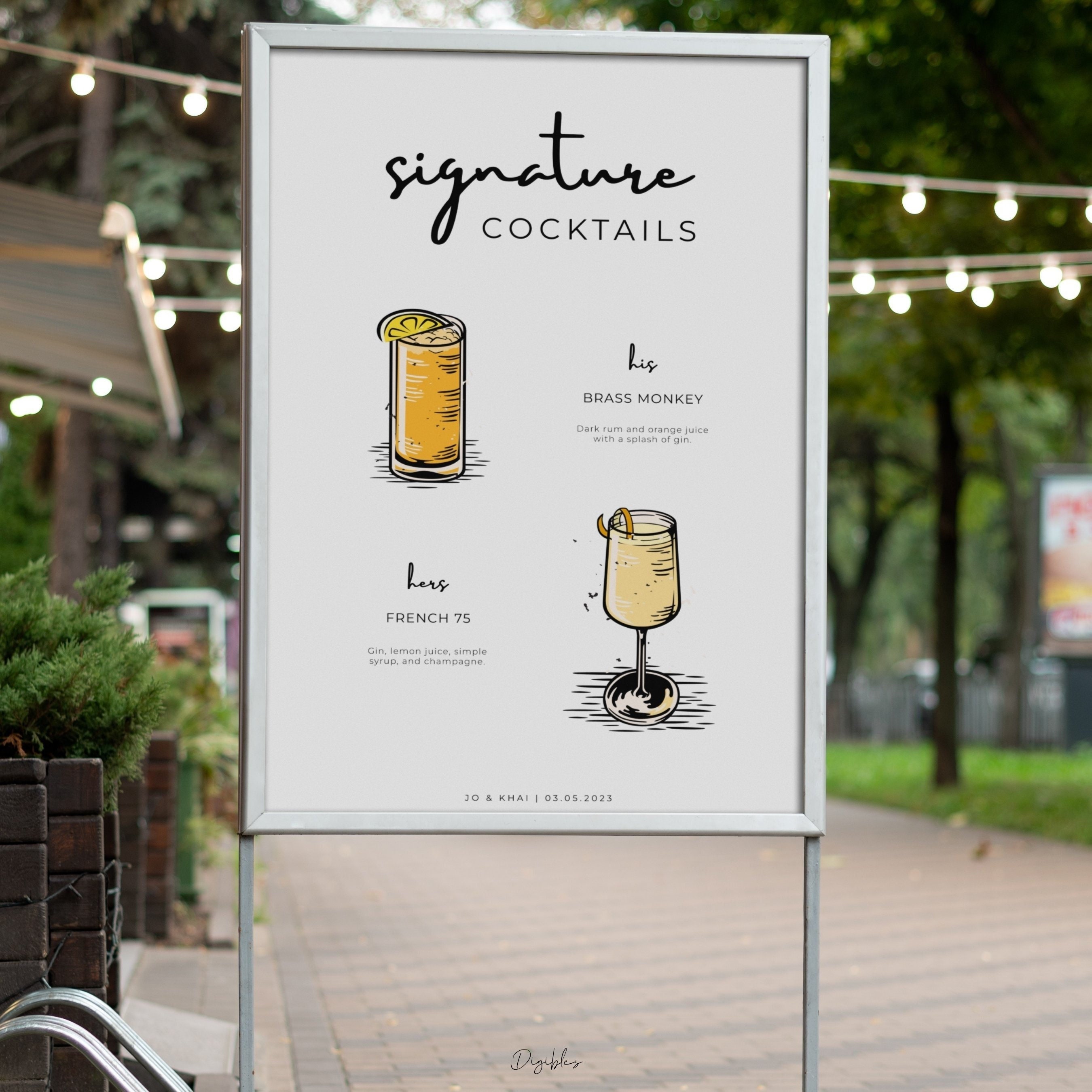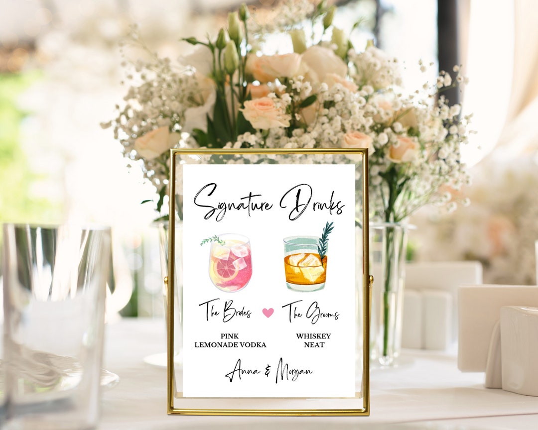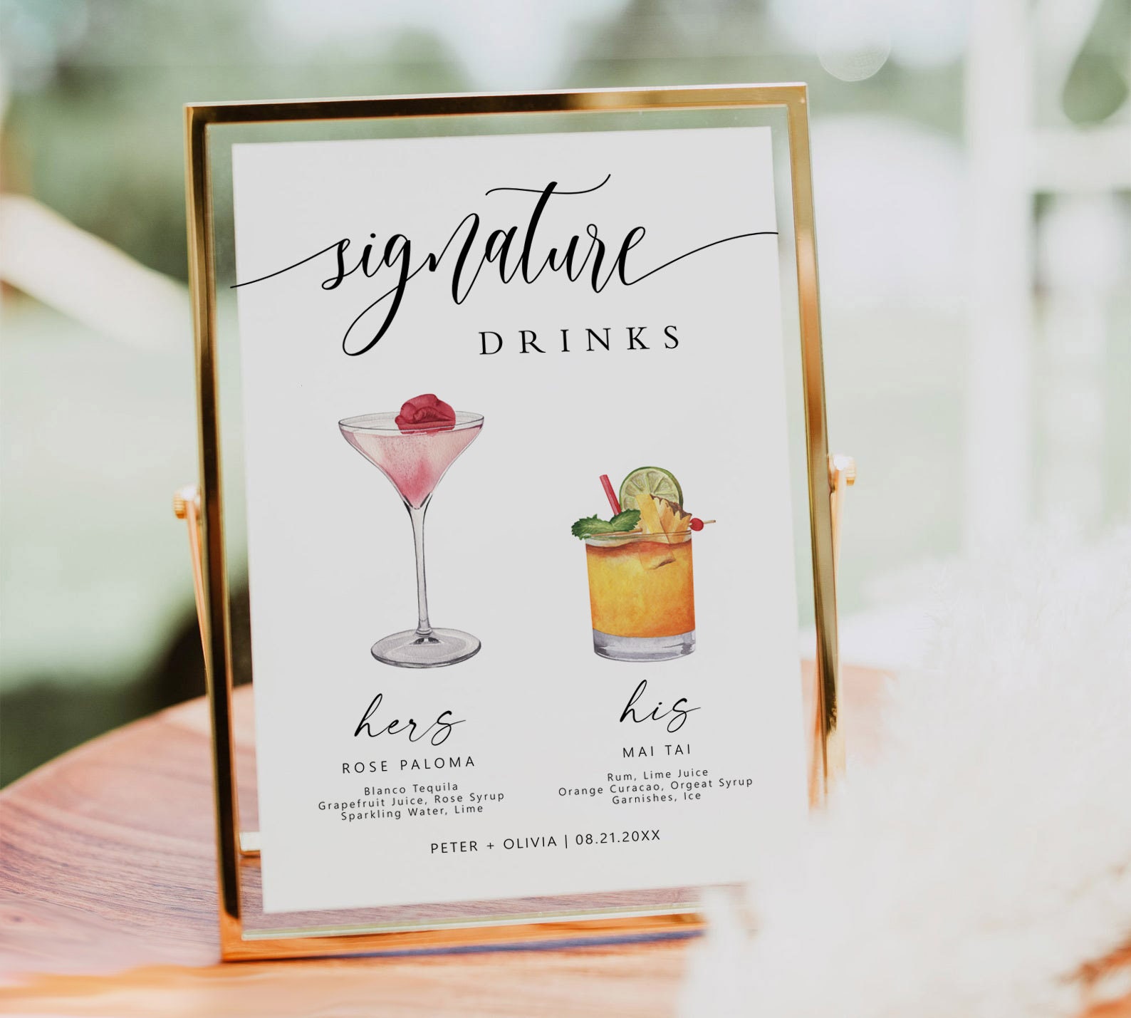 Editable Signature Cocktail Sign Template for Wedding Signature Drink