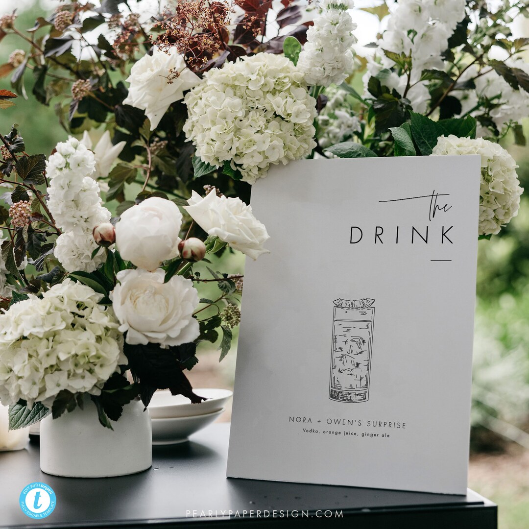 Signature Drink Sign Template Cocktail Sign Wedding Decor Minimalist