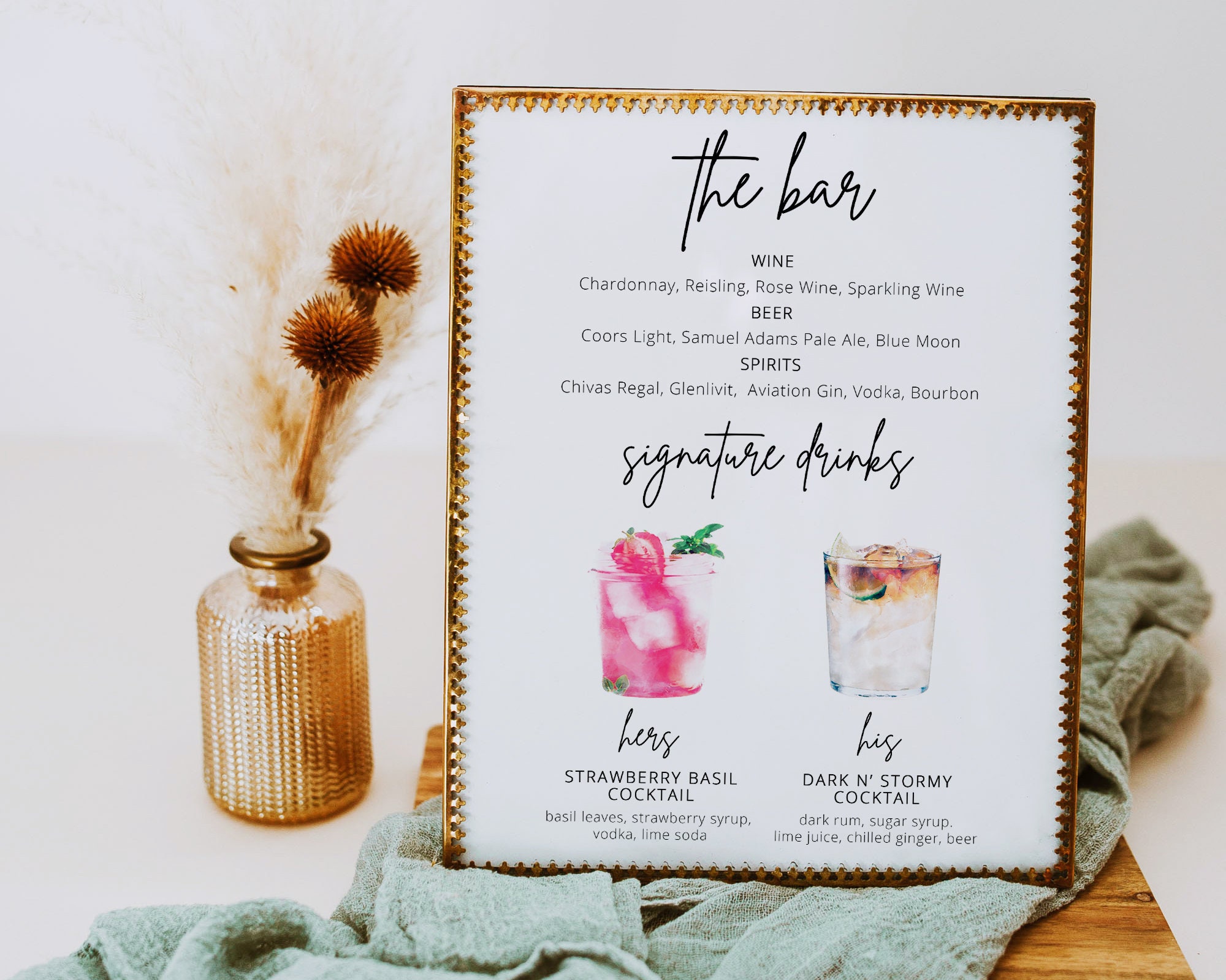 Signature Drinks Sign Template Signature Cocktail Sign Minimalist
